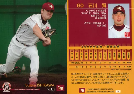 Nombre comercial en japonés: BBM/レギュラー/BBM 2010 東北楽天ゴールデンイーグルス E31[レギュラー]:石川賢
