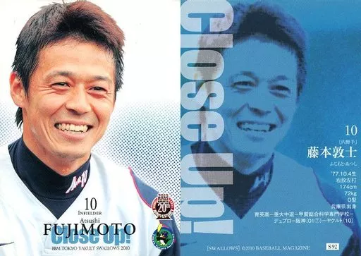 Nombre comercial en japonés: BBM/close-up!/BBM 東京ヤクルトスワローズ 2010 S92[close-up!]:藤本敦士