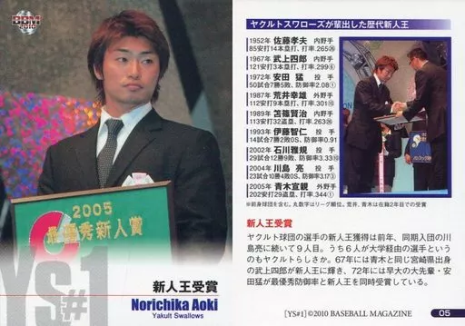 Nombre comercial en japonés: BBM/レギュラーカード/BBM2010 Ys#1 ヤクルトスワローズ 背番号1の系譜 05 [レギュラーカード] : 青木宣親