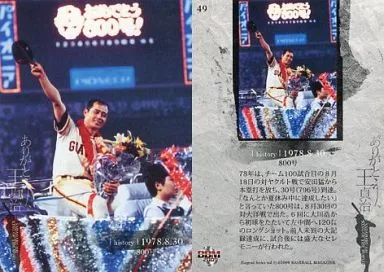 Nombre comercial en japonés: BBM/HISTORY/2009BBM「ありがとう、王貞治」メモリアルカードセット 49 [レギュラーカード] : 1978.8.30 800号