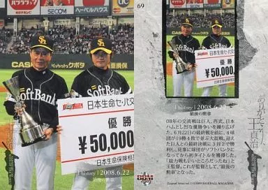 Nombre comercial en japonés: BBM/HISTORY/2009BBM「ありがとう、王貞治」メモリアルカードセット 69 [レギュラーカード] : 2008.6.22 最後の勲章