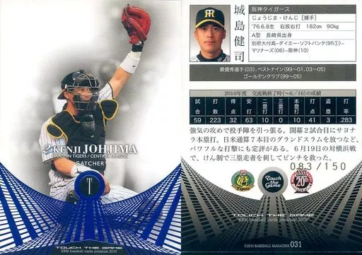 Nombre comercial en japonés: BBM/BBM2010 Touch the game(タッチ・ザ・ゲーム) 031[レギュラーカード]:城島健司 (青箔パラレル版)(/150)