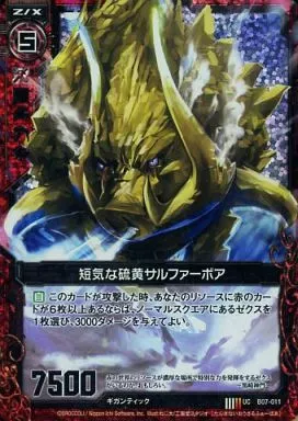 Nombre comercial en japonés: ゼクス/UC/ゼクス/赤/第7弾『運命の相剋』 B07-011[UC]:短気な硫黄サルファーボア(ホログラムレア)