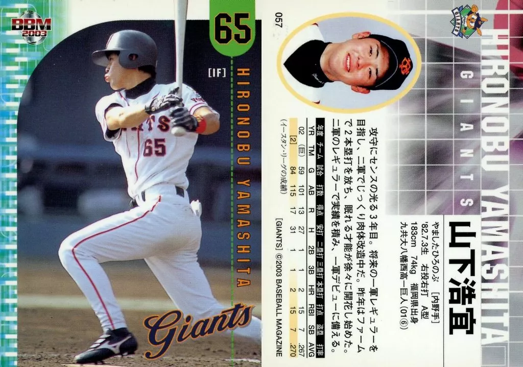 Nombre comercial en japonés: BBM/レギュラー/BBM2003 読売ジャイアンツ 057[レギュラー]:山下浩宜