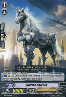 Nombre comercial en japonés: ヴァンガード/英語版/C/ゴールドパラディン/BT第12弾 Binding Force of the Black Rings[黒輪縛鎖] BT12/055EN[C]:Sunrise Unicorn/サンライズ・ユニコーン