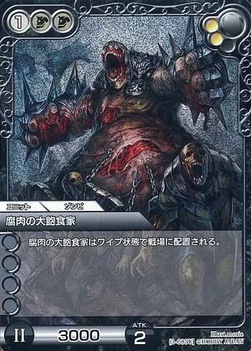 Nombre comercial en japonés: ラストクロニクル/U/ユニット/黒/ブースターパック第3弾「災禍を討つ者」 3-083[U]:(プレミアム)腐肉の大飽食家