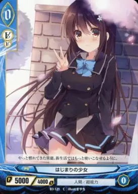 Nombre comercial en japonés: アンジュ・ヴィエルジュ/C/青/PG/人間/超能力/ブースターパック第3章「絶対進化の切札たち」 B3-121[C]:はじまりの少女