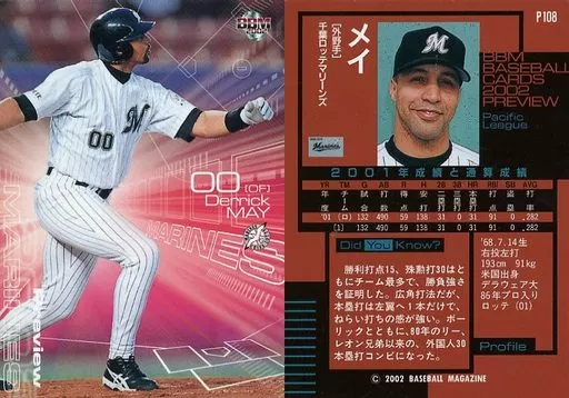 Nombre comercial en japonés: BBM/レギュラーカード/千葉ロッテマリーンズ/BBM2002 ベースボールカード プレビュー P108 [レギュラーカード] : メイ