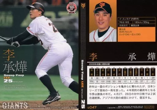Nombre comercial en japonés: BBM/レギュラーカード/BBM2010 読売ジャイアンツ G047 [レギュラーカード] : イ・スンヨプ