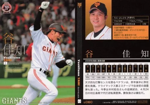 Nombre comercial en japonés: BBM/レギュラーカード/BBM2010 読売ジャイアンツ G060 [レギュラーカード] : 谷佳知