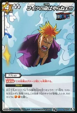 Nombre comercial en japonés: ミラクルバトルカードダス/C/アクション/ONE PIECE 覇気VS能力者 [OP15] 53/77[A][C]:こいつの命はやらねェ!!!