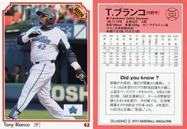 Nombre comercial en japonés: BBM/現役レギュラー/2013BBMベースボールカード CLASSIC 033 [現役レギュラー] : T.ブランコ