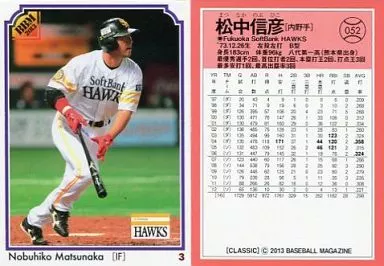 Nombre comercial en japonés: BBM/現役レギュラー/2013BBMベースボールカード CLASSIC 052 [現役レギュラー] : 松中信彦
