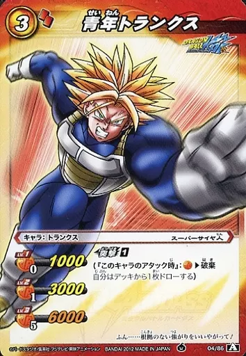 Nombre comercial en japonés: ミラクルバトルカードダス/C/キャラ/ドラゴンボール改 構築済みデッキ いきなり現界突破デッキ [DBS04] 04/86[A][C]:青年トランクス
