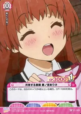 Nombre comercial en japonés: プリズムコネクト/C/-/赤/ブースターパック お兄ちゃんだけど愛さえあれば 関係ないよねっ 01-069[C]:共有する意識 鷹ノ宮ありさ(プリズム)