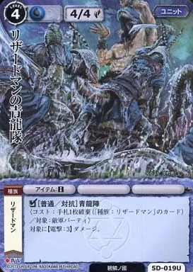 Nombre comercial en japonés: モンスターコレクション/並/ユニット/ブースターパック ジオテランの歌姫 5D-019[並]:リザードマンの青龍隊