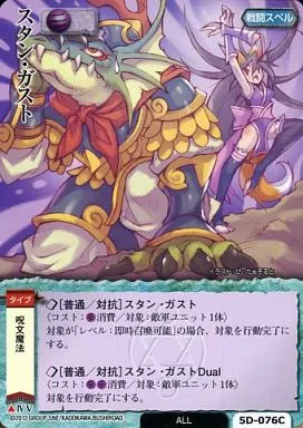 Nombre comercial en japonés: モンスターコレクション/頻繁/戦闘スペル/ブースターパック ジオテランの歌姫 5D-076[頻繁]:スタン・ガスト