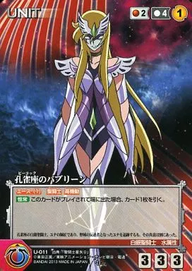 Nombre comercial en japonés: クルセイド/U/UNIT/赤/クルセイド 聖闘士星矢Ω~黄道十二宮編~ U-011[U]:孔雀座のパブリーン
