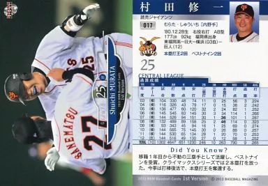Nombre comercial en japonés: BBM/レギュラー/2013 BBM ベースボールカード 1stバージョン 017[レギュラー]:村田修一