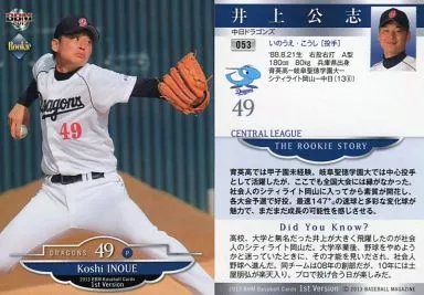 Nombre comercial en japonés: BBM/レギュラー/2013 BBM ベースボールカード 1stバージョン 053[レギュラー]:井上公志