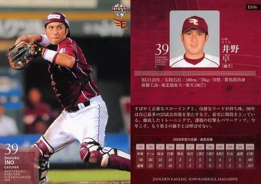 Nombre comercial en japonés: BBM/レギュラーカード/BBM2009 東北楽天ゴールデンイーグルス E036 [レギュラーカード] : 井野卓