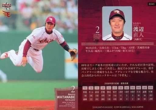 Nombre comercial en japonés: BBM/レギュラーカード/BBM2009 東北楽天ゴールデンイーグルス E043 [レギュラーカード] : 渡辺直人