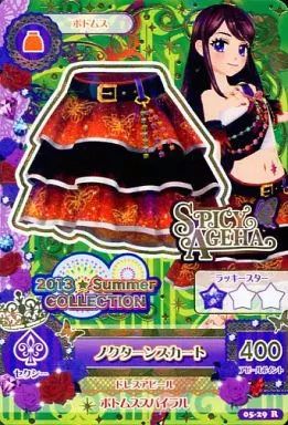 Nombre comercial en japonés: アイカツDCD/レア/ボトムス/SPICY AGEHA/セクシー/第5弾 05-29[レア]:ノクターンスカート/紫吹蘭
