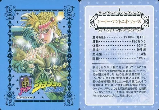 Nombre comercial en japonés: アニメ系トレカ/デイリーヤマザキ ココストア スリーエフ セーブオン限定/ジョジョ25周年 メモリアルカード シーザー・アントニオ・ツェペリ
