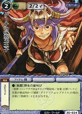 Nombre comercial en japonés: モンスターコレクション/稀/ユニット/ブースターパック 銀嶺のリヒテルス 3D-024[稀]:ダーナの恐竜王子