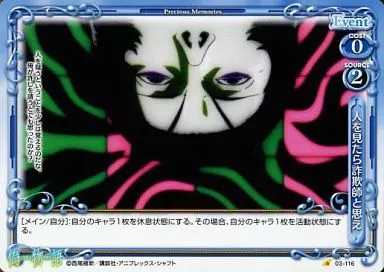 Nombre comercial en japonés: プレシャスメモリーズ/C/イベント/青/偽物語 ブースターパック 03-116[C]:人を見たら詐欺師と思え