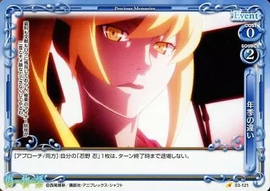 Nombre comercial en japonés: プレシャスメモリーズ/C/イベント/青/偽物語 ブースターパック 03-121[C]:年季の違い