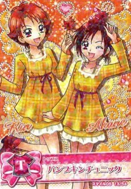 Nombre comercial en japonés: プリキュアデータカードダス/ノーマル/ドレスカード/【プリキュアオールスターズ】スマイル05「マーチオータムコレクション」 13/54[ノーマル]:パンプキンチュニック(日野あかね&夏木りん)