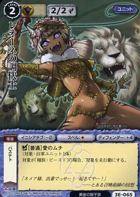 Nombre comercial en japonés: モンスターコレクション/稀/ユニット/クロスブースター 竜神殿の巫女 3E-065[稀]:レオーネの調伏士