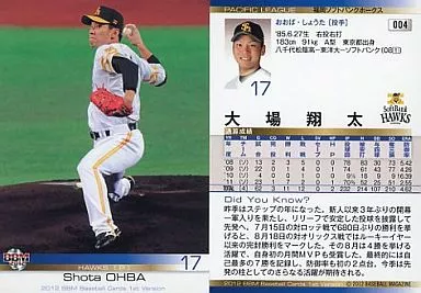 Nombre comercial en japonés: BBM/レギュラー/BBM 2012 ベースボールカード 1stバージョン 004[レギュラー]:大場翔太