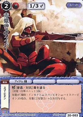 Nombre comercial en japonés: モンスターコレクション/稀/ユニット/サーガランドの貴公子 2E-003[稀]:赤蠍のスナイパー
