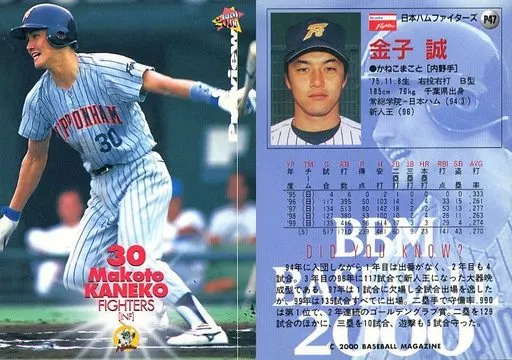 Nombre comercial en japonés: BBM/レギュラーカード/日本ハムファイターズ/BBM2000 ベースボールカード プレビュー P47 [レギュラーカード] : 金子誠
