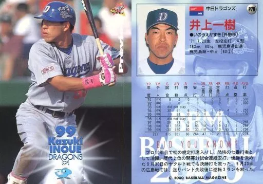 Nombre comercial en japonés: BBM/レギュラーカード/中日ドラゴンズ/BBM2000 ベースボールカード プレビュー P70 [レギュラーカード] : 井上一樹
