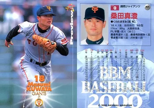 Nombre comercial en japonés: BBM/レギュラーカード/読売ジャイアンツ/BBM2000 ベースボールカード プレビュー P71 [レギュラーカード] : 桑田真澄