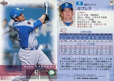 Nombre comercial en japonés: BBM/レギュラーカード/BBM2003ベースボールカード1st 206:カブレラ「埼玉西武ライオンズ」
