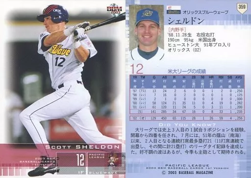 Nombre comercial en japonés: BBM/レギュラーカード/BBM2003ベースボールカード1st 359:シェルドン「オリックスブルーウェーブ」