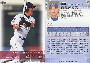 Nombre comercial en japonés: BBM/レギュラーカード/BBM2003ベースボールカード1st 365:高見澤考史「オリックスブルーウェーブ」