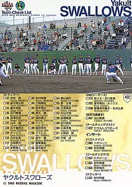 Nombre comercial en japonés: BBM/レギュラーカード/BBM2003ベースボールカード1st 422:東京ヤクルトスワローズチェックリスト