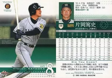 Nombre comercial en japonés: BBM/レギュラーカード/BBM2003ベースボールカード2nd 546:片岡篤史「阪神タイガース」