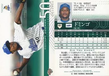 Nombre comercial en japonés: BBM/レギュラーカード/BBM2003ベースボールカード2nd 601:ドミンゴ「横浜ベイスターズ」