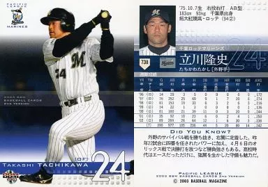 Nombre comercial en japonés: BBM/レギュラーカード/BBM2003ベースボールカード2nd 738:立川隆史「千葉ロッテマリーンズ」