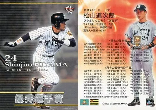 Nombre comercial en japonés: BBM/レギュラーカード/阪神タイガース/BBM2003 第54回日本シリーズカード 58 [レギュラーカード] : 桧山進次郎