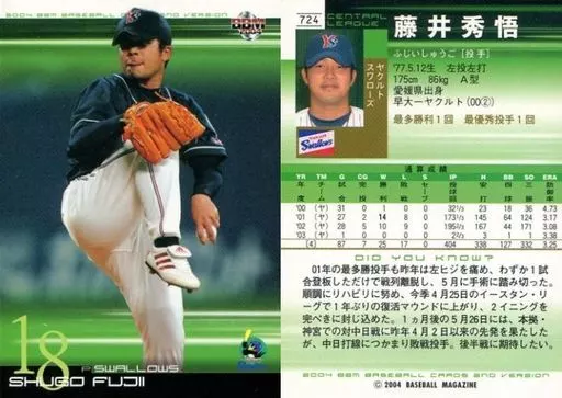 Nombre comercial en japonés: BBM/レギュラーカード/BBM2004ベースボールカード2nd 724:藤井秀悟「東京ヤクルトスワローズ」
