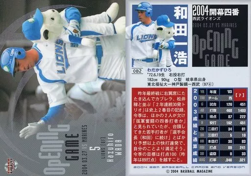 Nombre comercial en japonés: BBM/BBM2004ベースボールカード2nd OB02:和田一浩「埼玉西武ライオンズ」