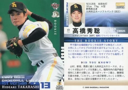 Nombre comercial en japonés: BBM/レギュラーカード/BBM2005ベースボールカード1st 77 : 高橋秀聡「福岡ソフトバンクホークス」