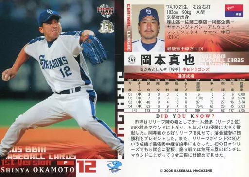 Nombre comercial en japonés: BBM/レギュラーカード/BBM2005ベースボールカード1st 249 : 岡本真也「中日ドラゴンズ」